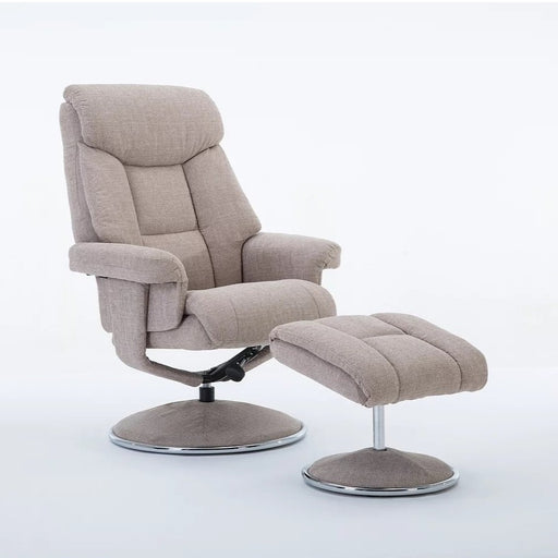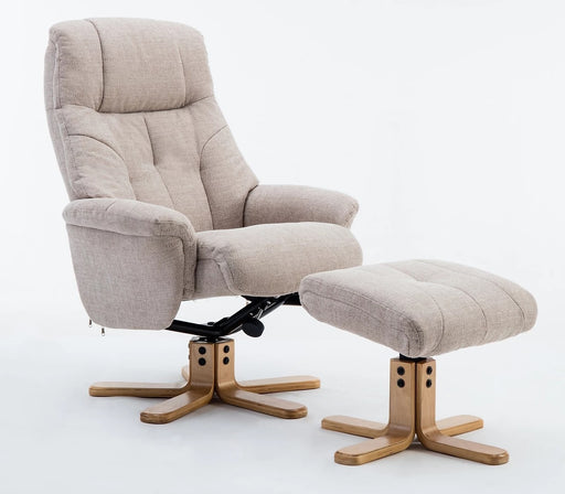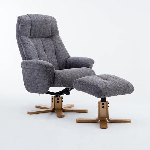 The Mandy Reclining Swivel Chair and Stool, upholstered in a soft touch faux leather with a walnut colour laminated base is now available with an a...